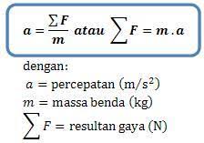 d. Resultan gaya merupakan hasil bagi antara massa dengan percepatan.